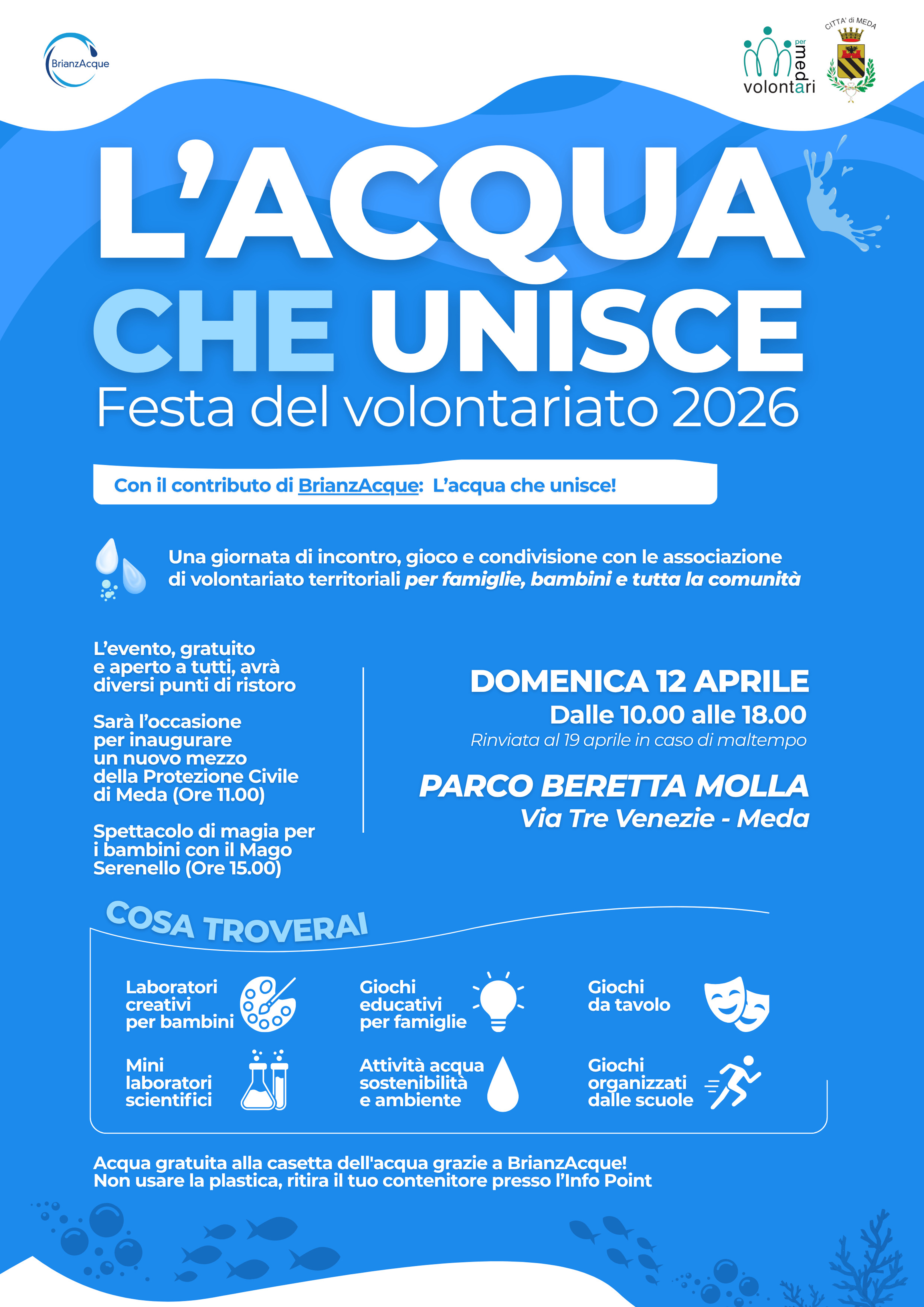 Giornata di incontro delle Associazioni di Volontariato con laboratori creativi e scientifici per bambini, giochi educativi per famiglie, giochi organizzati dalle scuole e attività legate alla sostenibilità ambientale.